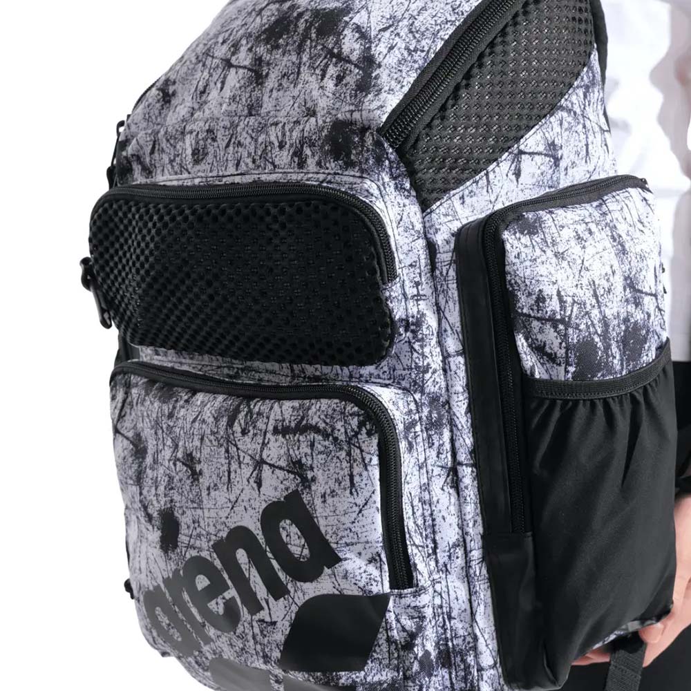 Το μεγάλο και εξαιρετικά κομψό σακίδιο πλάτης Arena One Go Allover 45L, με σχεδιασμό φόρτωσης από πάνω, επιτρέπει την εύκολη συσκευασία και πρόσβαση στα υπάρχοντά σας.
