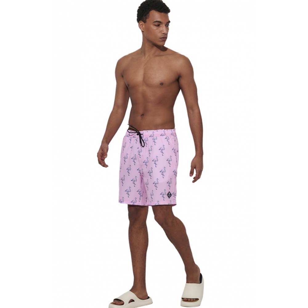 • Body Action Men's Allover Printed Swim Shorts Ροζ