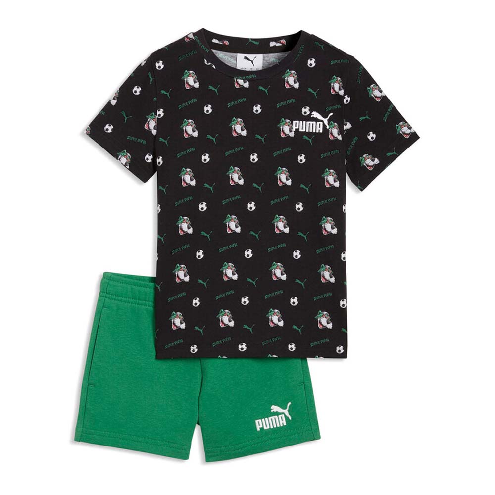 • Puma Infant's Super Puma Allover Tee and Shorts Set Μαύρο - Πράσινο