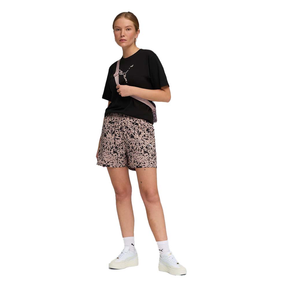 • Puma Women's Essential Graphic Animal Allover Print High Rise 4inch Woven Shorts Μπεζ
